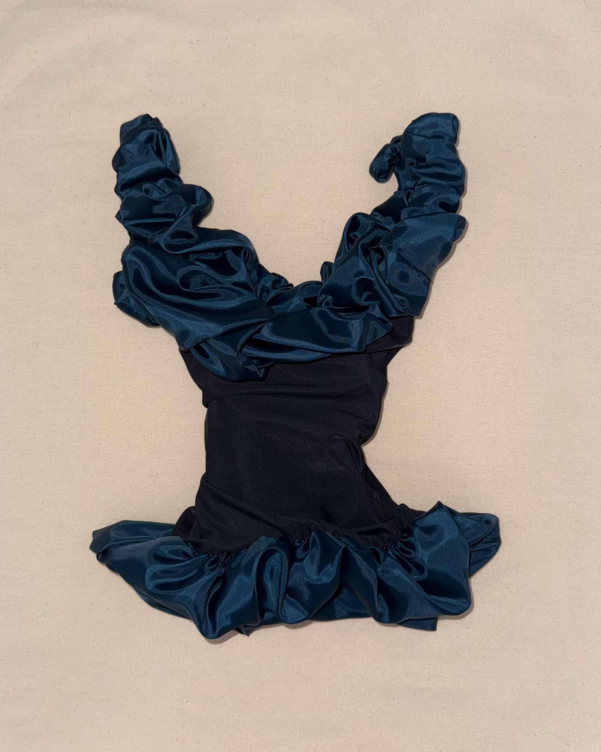A CULT FAVOURITE MULTI-FUNCTIONAL, STRETCHY CORSET THAT LOOKS WET AND FEELS LIKE BUTTER. MADE WITH TECHNICAL ITALIAN JERSEY FOR EXTREME COMFORT AND SIZE FLEXIBILITY. DRAMATIC RUCHING ON THE NECKLINE & HEM FRAMES THE BUST AND CURVES OF THE BODY.