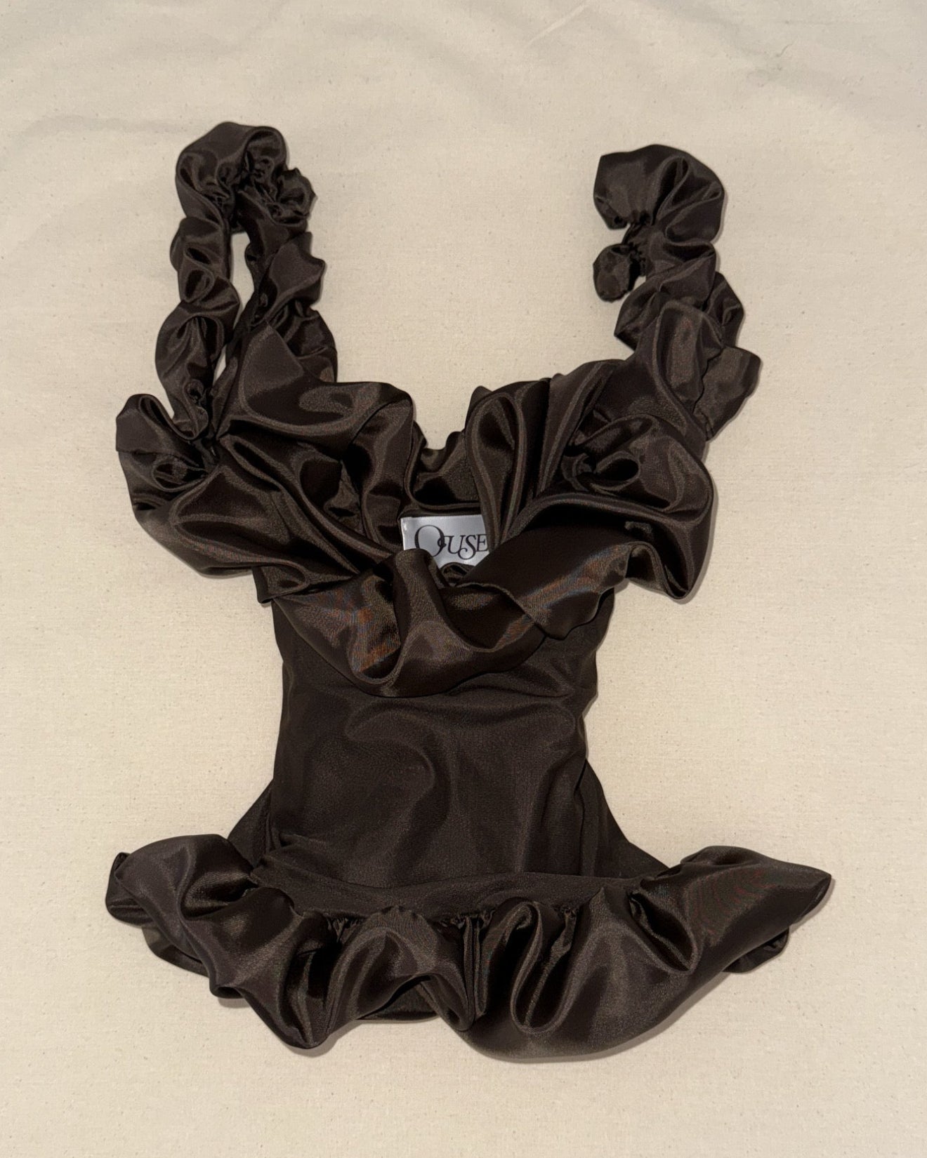 A CULT FAVOURITE MULTI-FUNCTIONAL, STRETCHY CORSET THAT LOOKS WET AND FEELS LIKE BUTTER. MADE WITH TECHNICAL ITALIAN JERSEY FOR EXTREME COMFORT AND SIZE FLEXIBILITY. DRAMATIC RUCHING ON THE NECKLINE & HEM FRAMES THE BUST AND CURVES OF THE BODY.