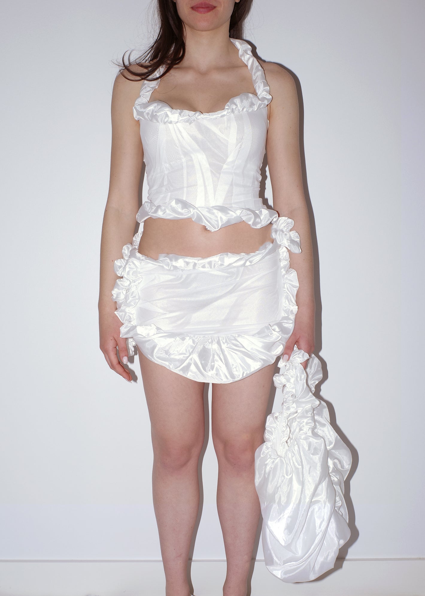 BAG - A VOLUMINOUS BAG WITH DRAMATIC RUCHING FOR ULTIMATE BOUNCE AND FLOUNCE.